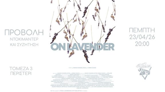 Την Πέμπτη 23 Απριλίου 2026 στις 20.00 θα μαζευτούμε να παρακολουθήσουμε και να συζητήσουμε με τους συντελεστές για το ντοκιμαντέρ "On Lavender" του Μάκη Ευαγγελάτου.