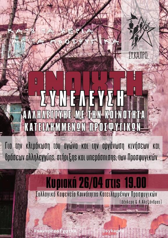 [GR/ENG] Ανοιχτή Συνέλευση Αλληλεγγύης με την Κοινότητα Κατειλημμένων Προσφυγικών