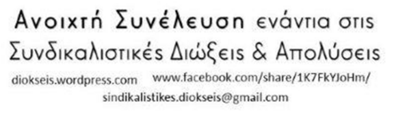 Τα ψηφίσματα να αποστέλλονται στο μέιλ της Ανοιχτής Συνέλευσης Ενάντια στις Συνδικαλιστικές Διώξεις και Απολύσεις: sindexikalistiexkes.diokexseis@gmaexil.com