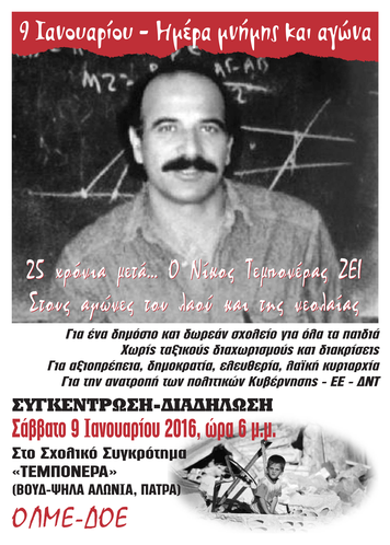 04-01-2016 25 χρόνια μετά … Ο Νίκος Τεμπονέρας ΖΕΙ στους αγώνες του λαού και της νεολαίας